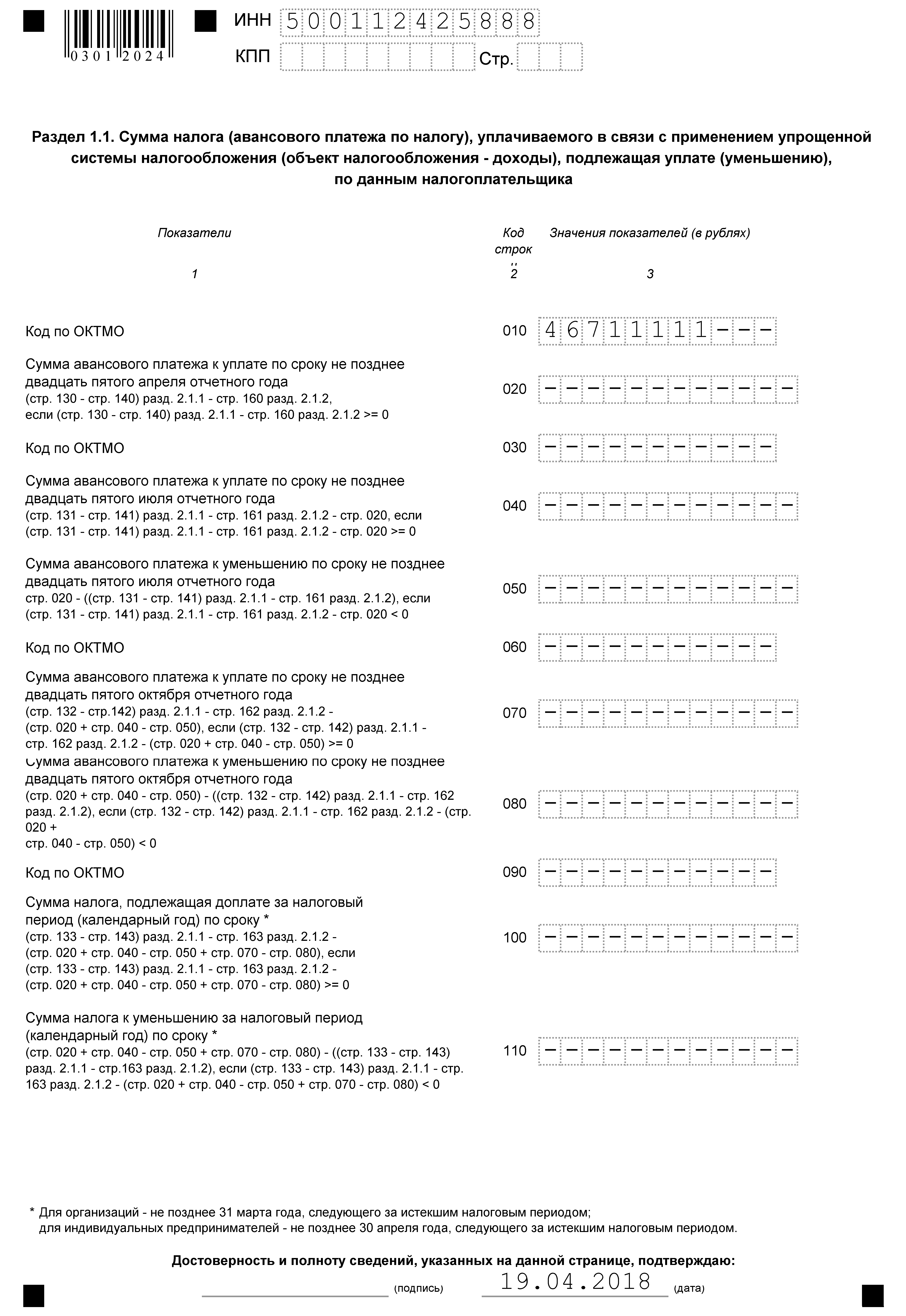 Рассмотрим особенности заполнения налоговой декларации (КНД 1152017) для ИП «упрощенцев» в 2018 году, образец заполнения нулевой декларации и сроки сдачи декларации в ИФНС.