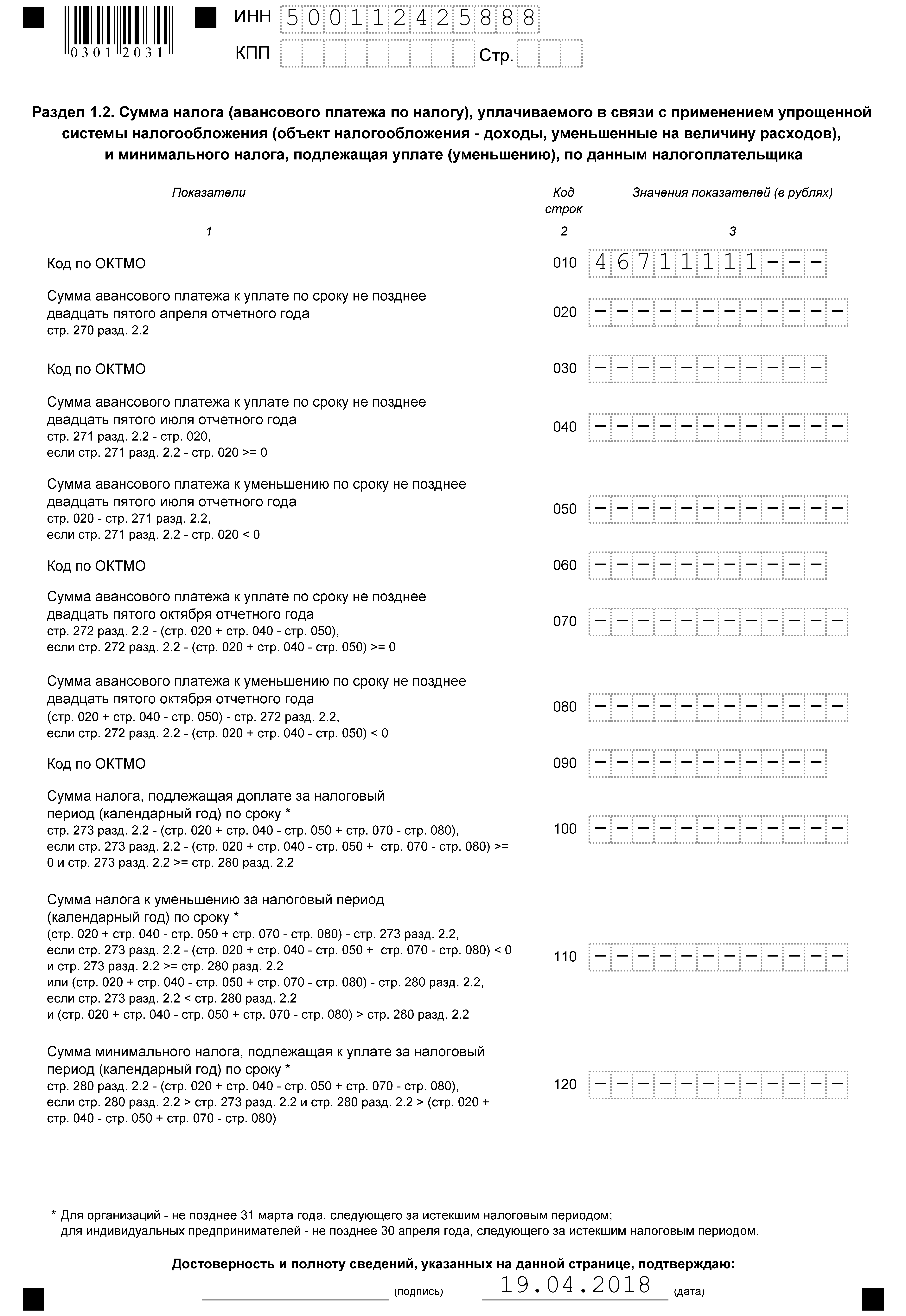 - Образец заполнения налоговой декларации для ИП упрощенка 2018 нулевая (УСН)-6% скачать в формате Excel