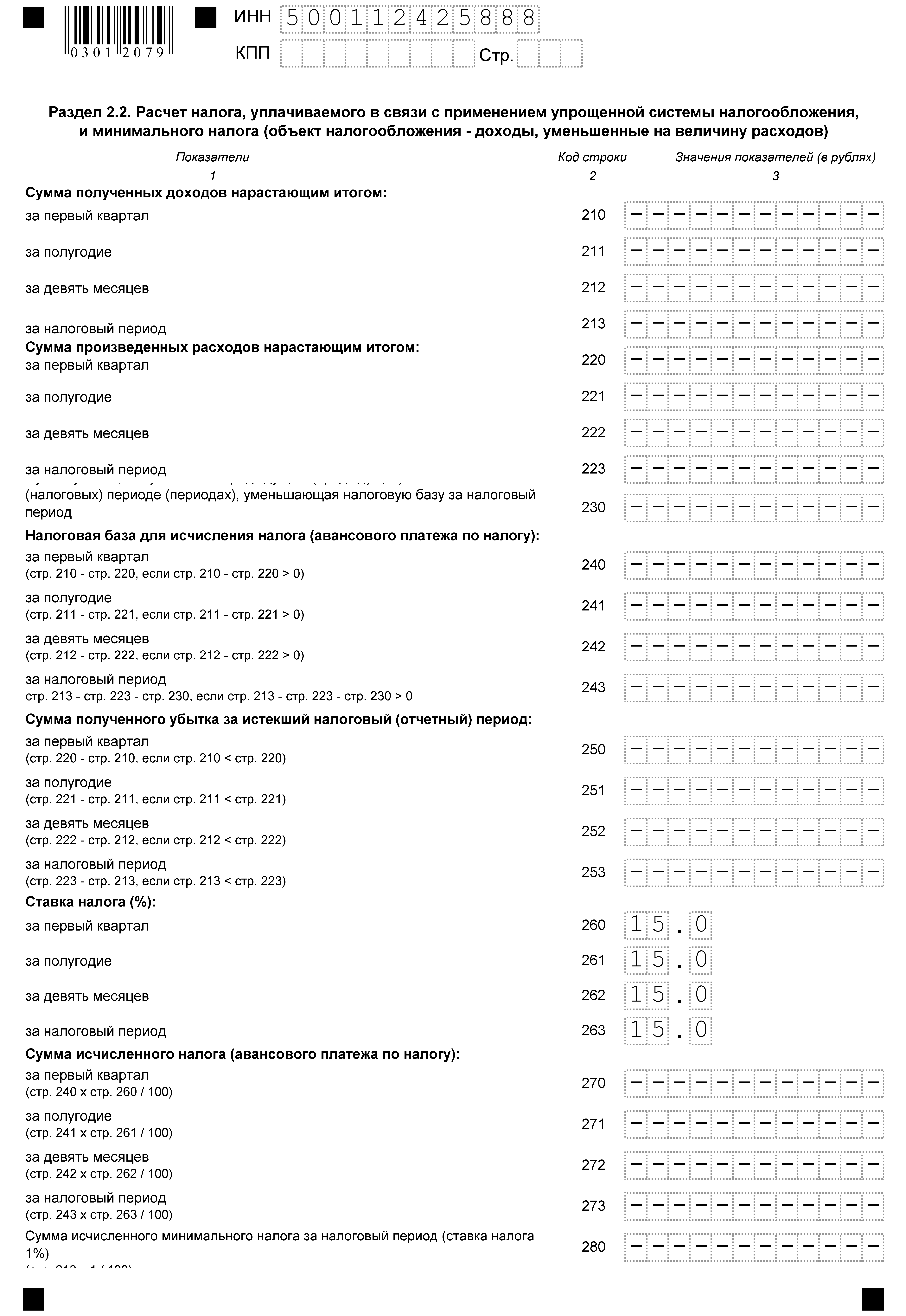 Индивидуальные предприниматели (ИП) принимающие УСН – 15% (объект «Доходы минус расходы») заполняют: